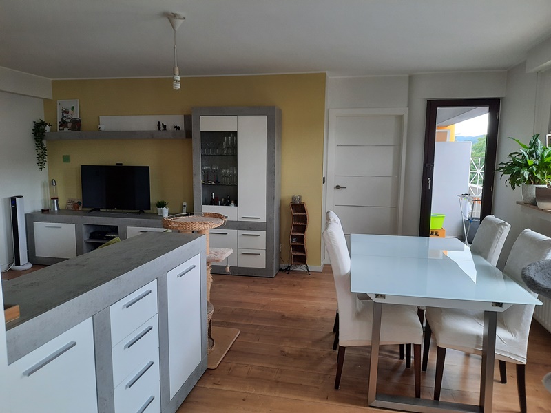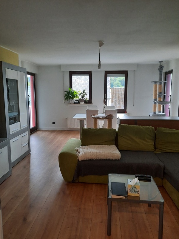 appartement entièrement rénové au 2ième étage dans une résidence, rue Nicolas Welter, living avec cuisine équipée, 1 chambre, salle de douche, deux balcons, emplacement au garage, cave.